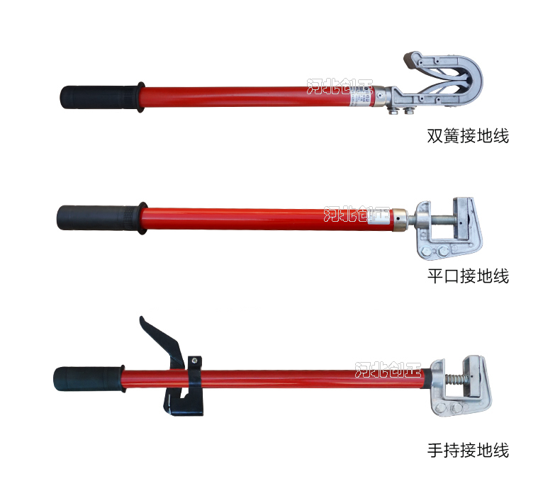 4)接地軟銅線有分相式和合相式,接地棒有平口螺旋式、手握式、圓口式、雙簧卡口式、猴頭式等。