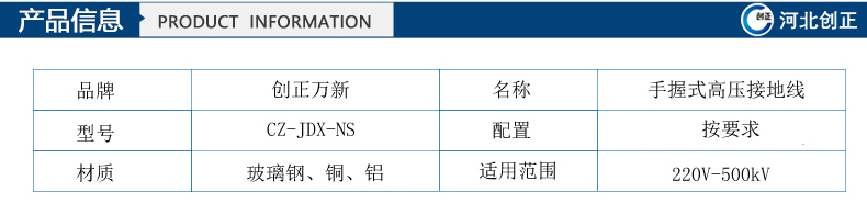1)型號:CZ-JDX-NS-6kV手握式高壓接地線;